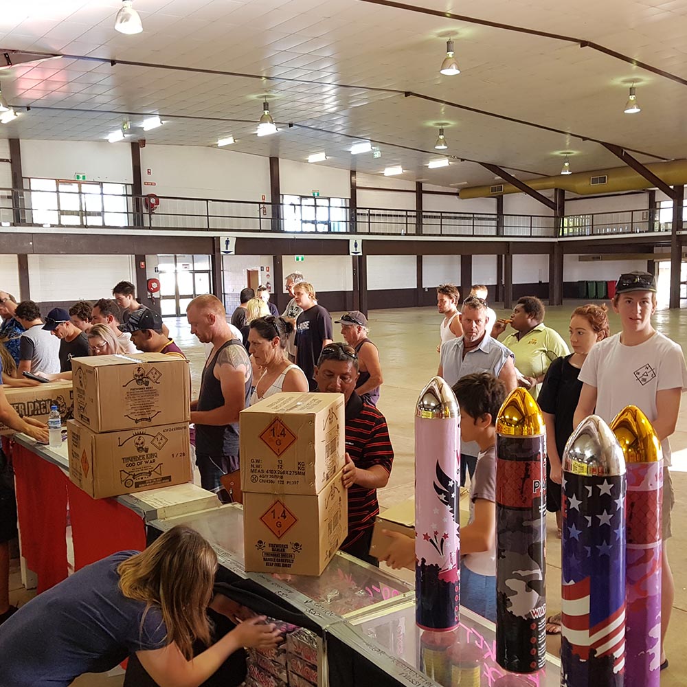 Fireworks Warehouse Store – Darwin Showgrounds (Foskie Pavilion), Shean Road, Winnellie, NT 0820.